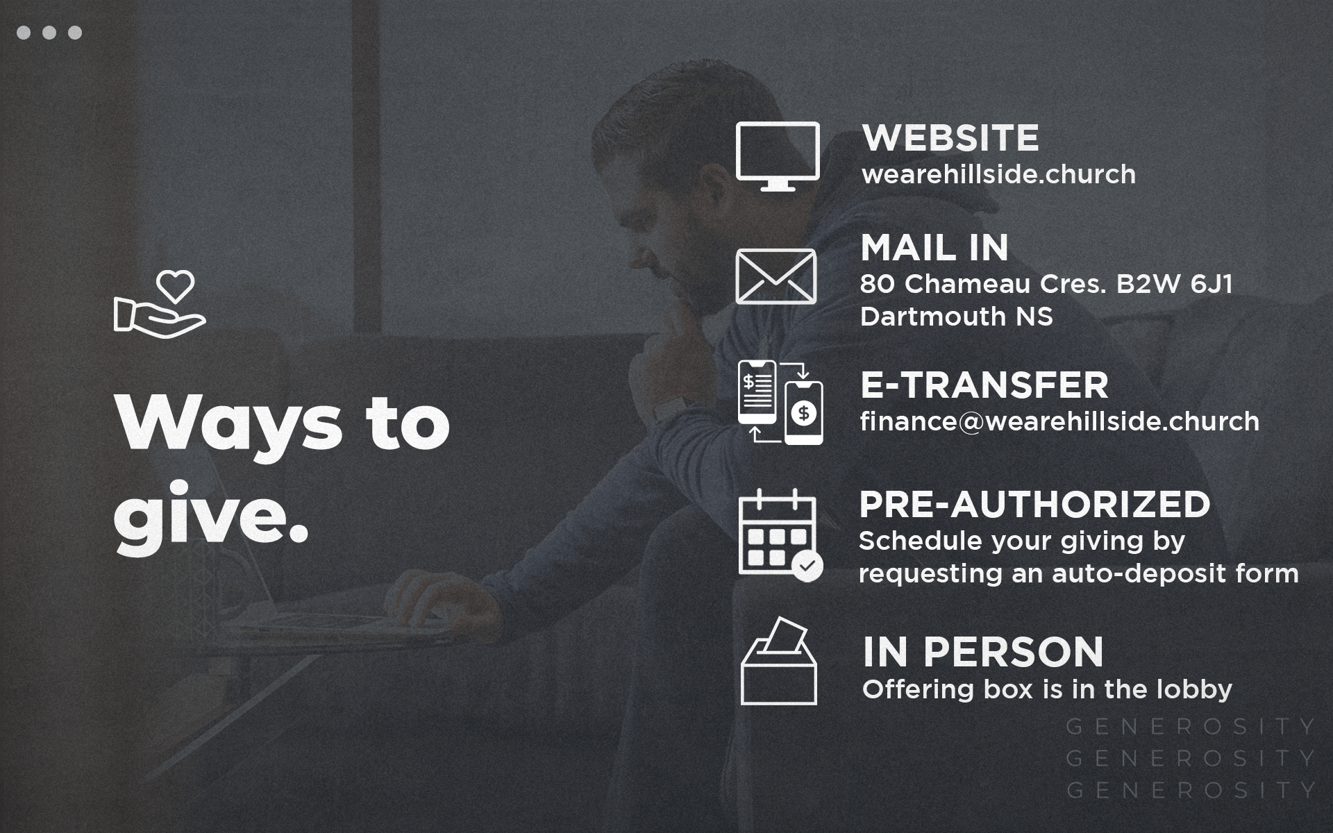 Here are the different ways you can give at Hillside